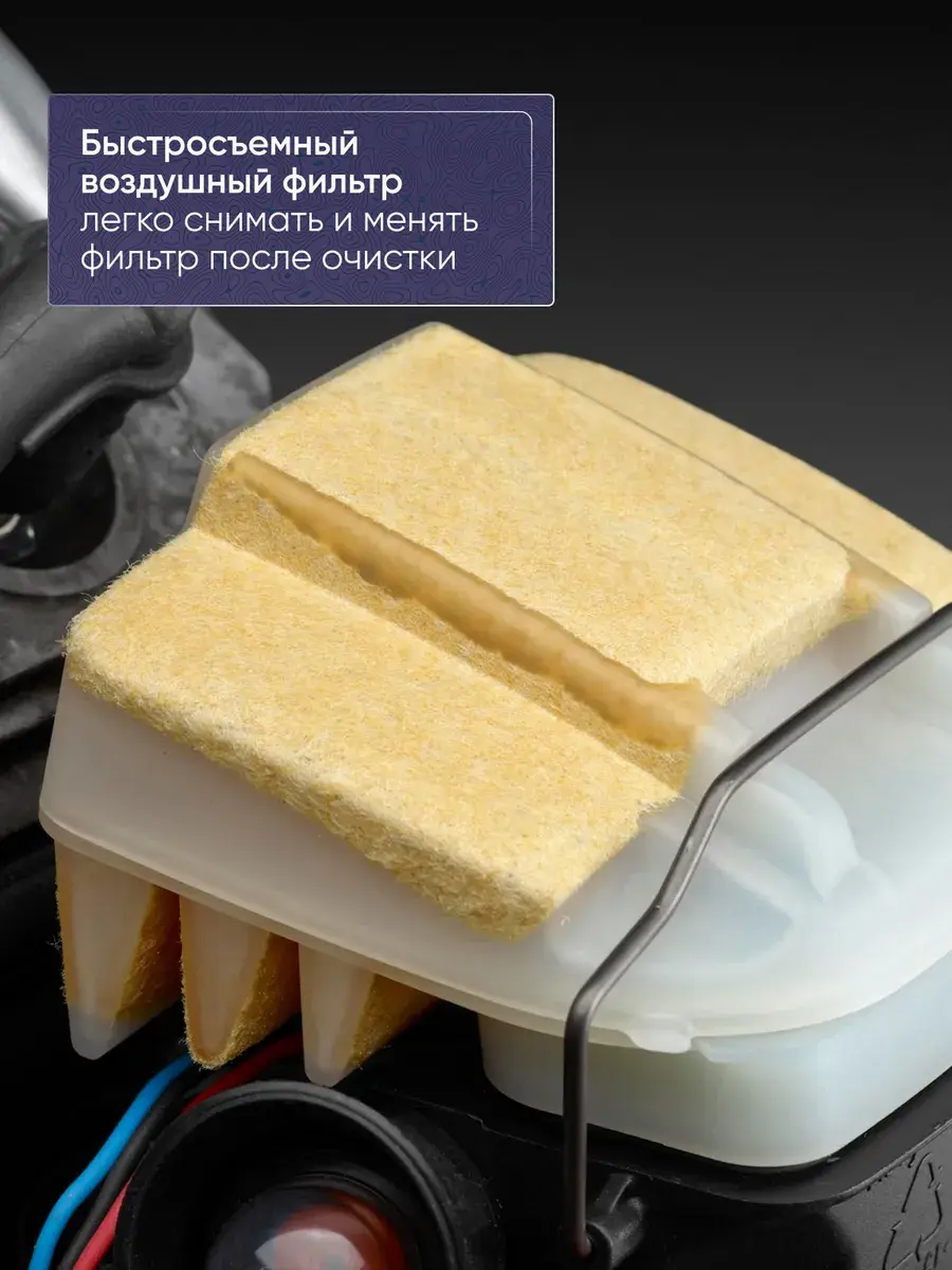 - Быстросъемный воздушный фильтр: Упрощает очистку и замену.