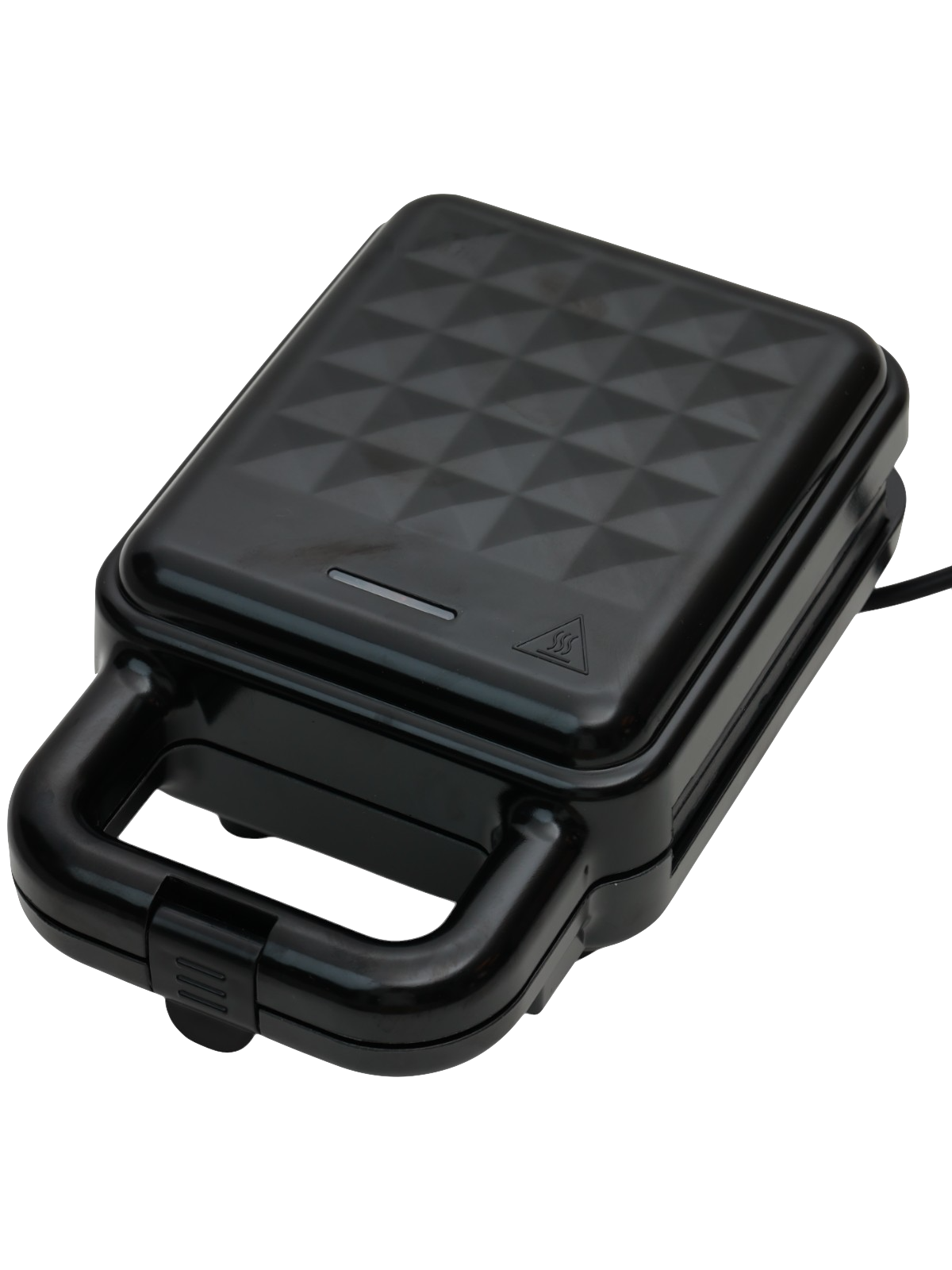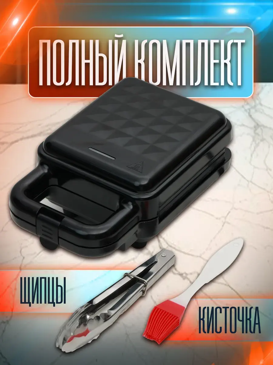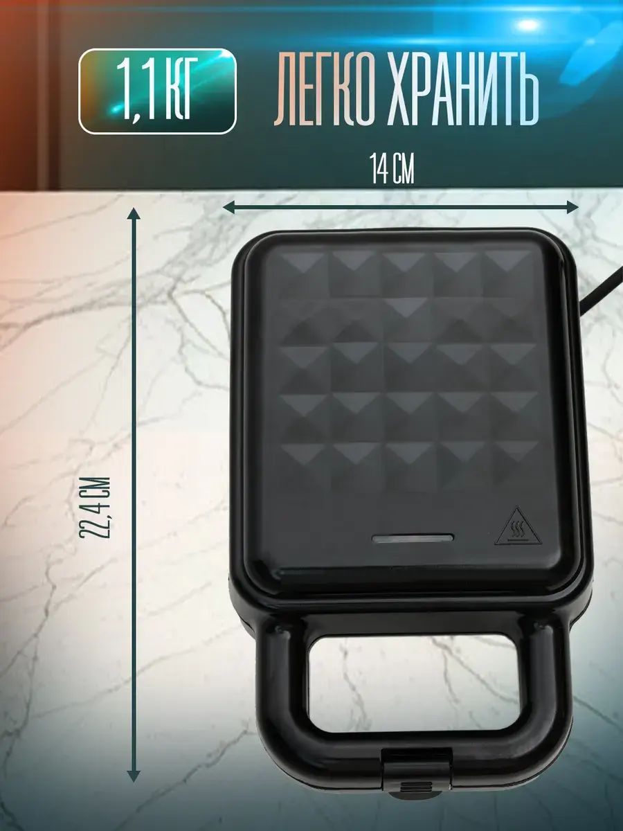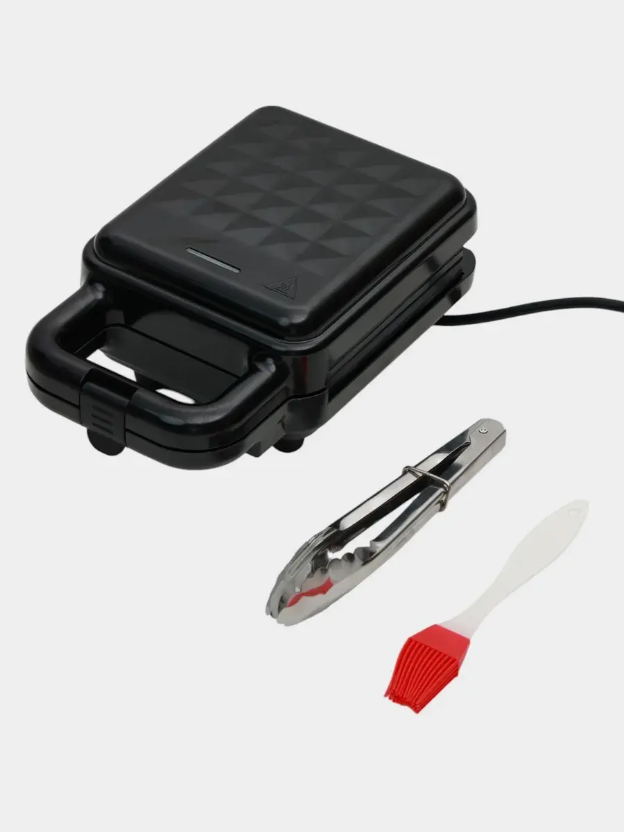 Двойной нагрев для равномерного приготовления сэндвичей сверху и снизу, удобное антипригарное покрытие для приготовления без масла, механический замок для безопасного использования, индикатор включения для контроля работы.