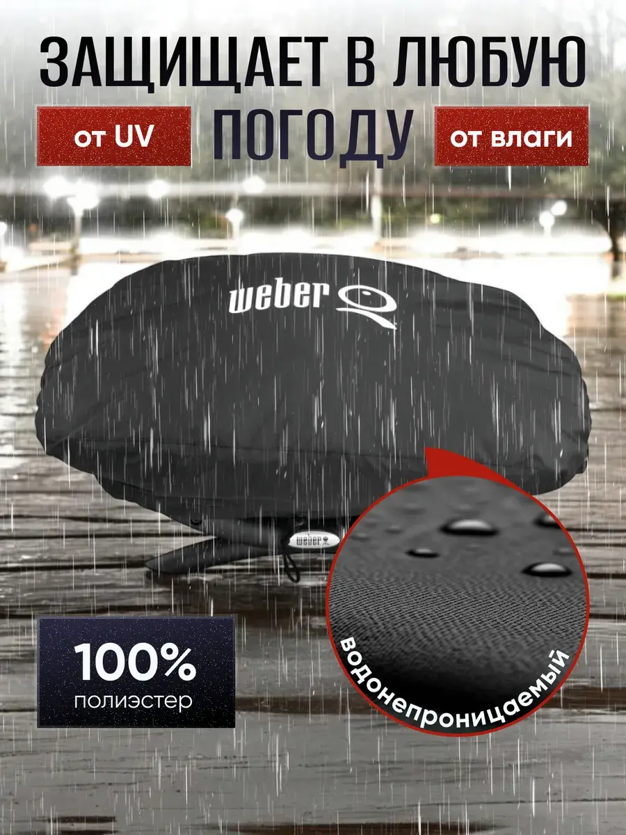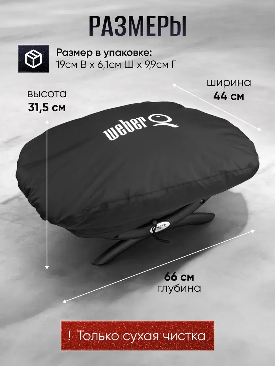 Водоотталкивающий материал помогает сохранить гриль чистым и сухим Крепёжные ремешки надёжно удерживают чехол даже при сильном ветре Стильный внешний вид — чехол смотрится аккуратно и эстетично Простая в уходе ткань — достаточно протереть влажной салфеткой