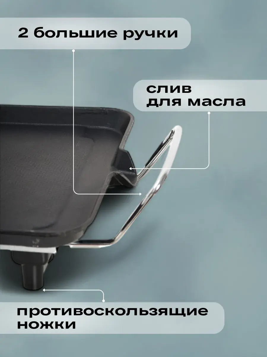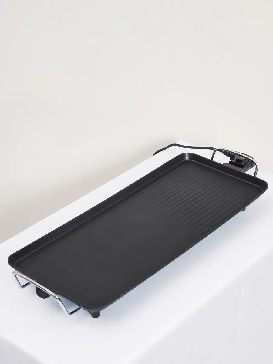 Хотите насладиться прямо у себя дома процессом приготовления на открытом и большом гриле? Устройте себе барбекю в вашей квартире с электрическим домашним грилем с двумя зонами готовки и рельефной структурой дна. Мощность 1500 Вт, номинальная температура от 50 до 240 ℃, пять уровней контроля температуры для идеального приготовления. Автоматическое отключение прибора при перегреве обеспечит безопасность использования. Гриль оснащен многослойным антипригарным покрытием, что делает его легким в уходе. Подвижный кронштейн большой электрогрильницы поможет легко удалить излишек жира, а противоскользящие ножки обеспечат стабильность при эксплуатации. Готовьте шашлычок или овощи на этом функциональном гриле - он подойдет как для больших компаний (3-12 человек), так и для семейных посиделок!