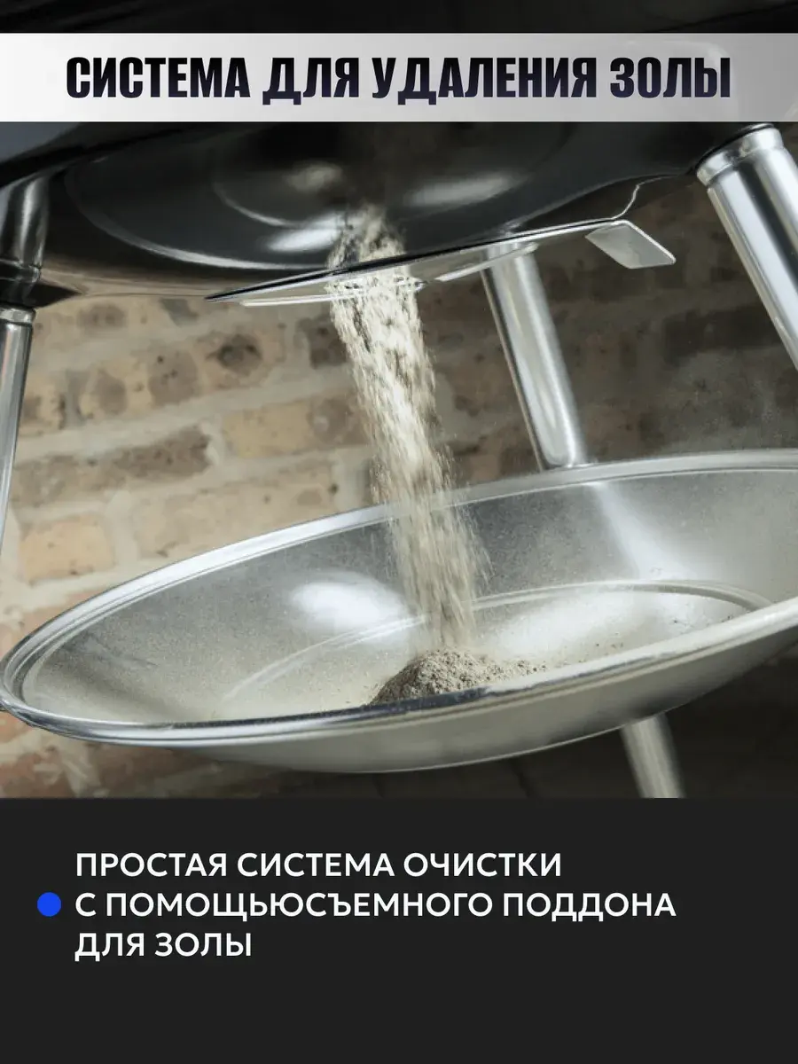 - Съемный поддон для золы облегчает очистку после приготовления.