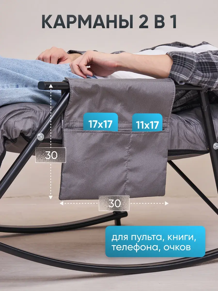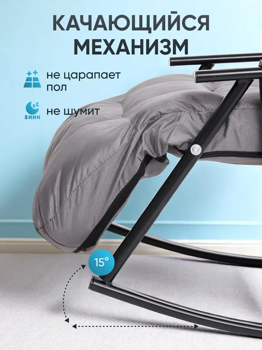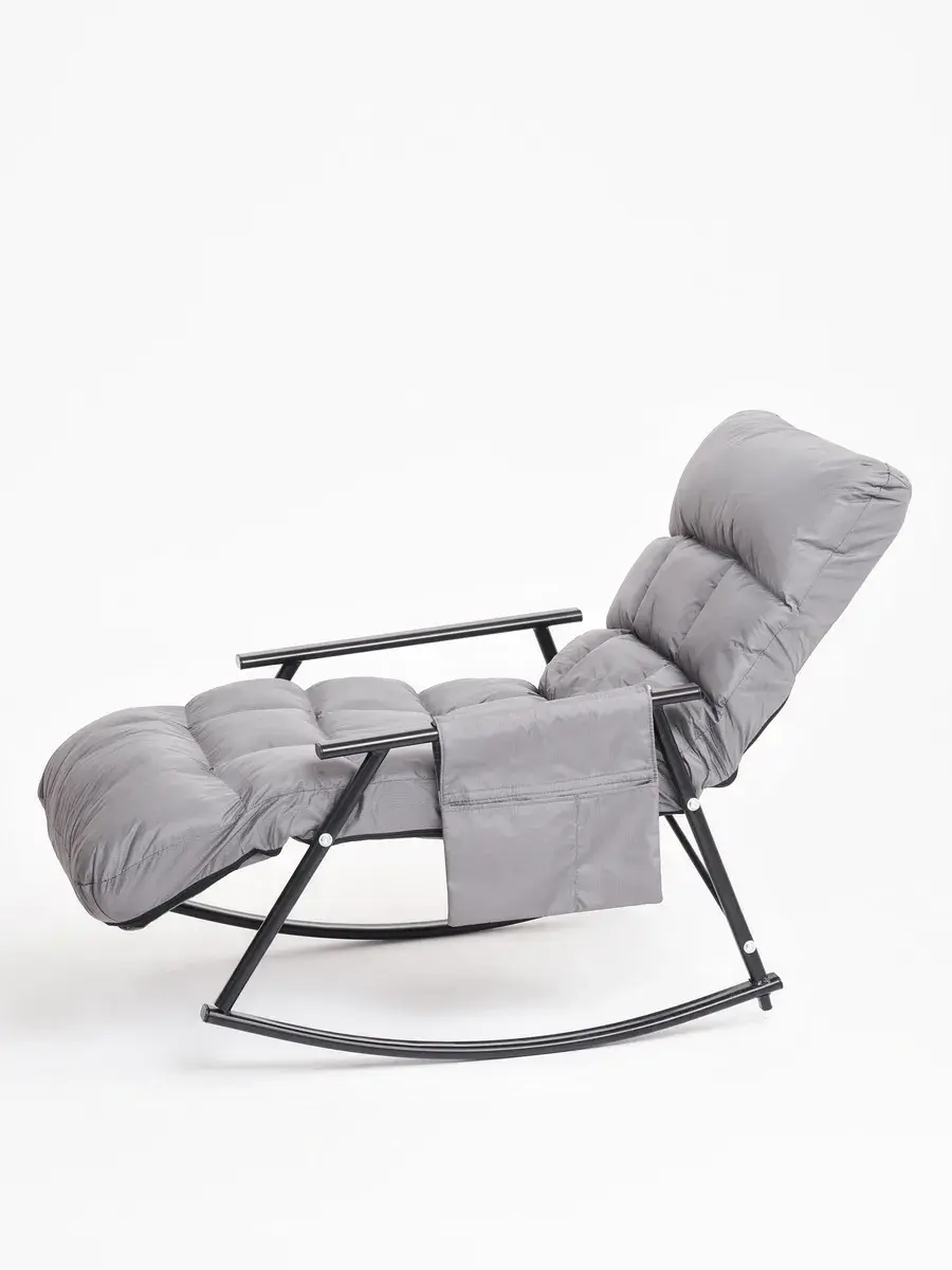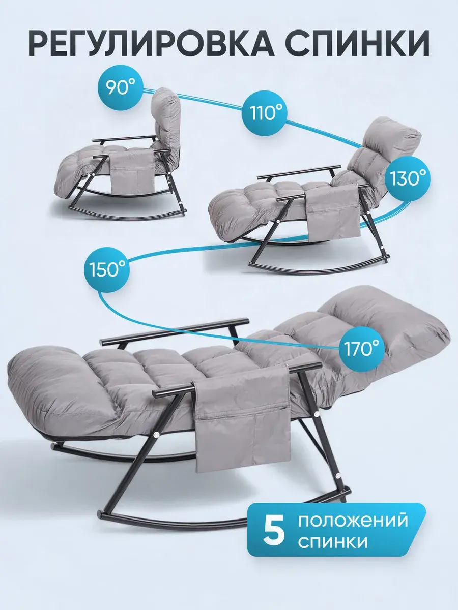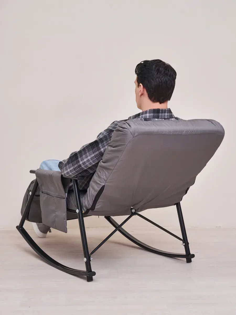 Кресло-качалка для взрослых для дома Sevilgame BigY – это универсальный предмет мебели, который объединяет функции кресла и качалки. Эта стильная мебель выполнена в дизайне современного минимализма, что делает её отличным выбором для интерьеров в скандинавском стиле, лофте или модерне. Практичное решение для отдыха в гостиной, спальне или на балконе. Кресло-качалка раскладывается до 170 градусов, а мягкий механизм качения создаёт комфорт и расслабление. Обивка из серой технологичной ткани и каркас из прочной стали делают эту мебель не только удобной, но и долговечной. Подвесной карман для хранения книг и аксессуаров добавляет практичности. Регулируемая спинка позволяет выбрать идеальный угол для чтения, отдыха или сна.