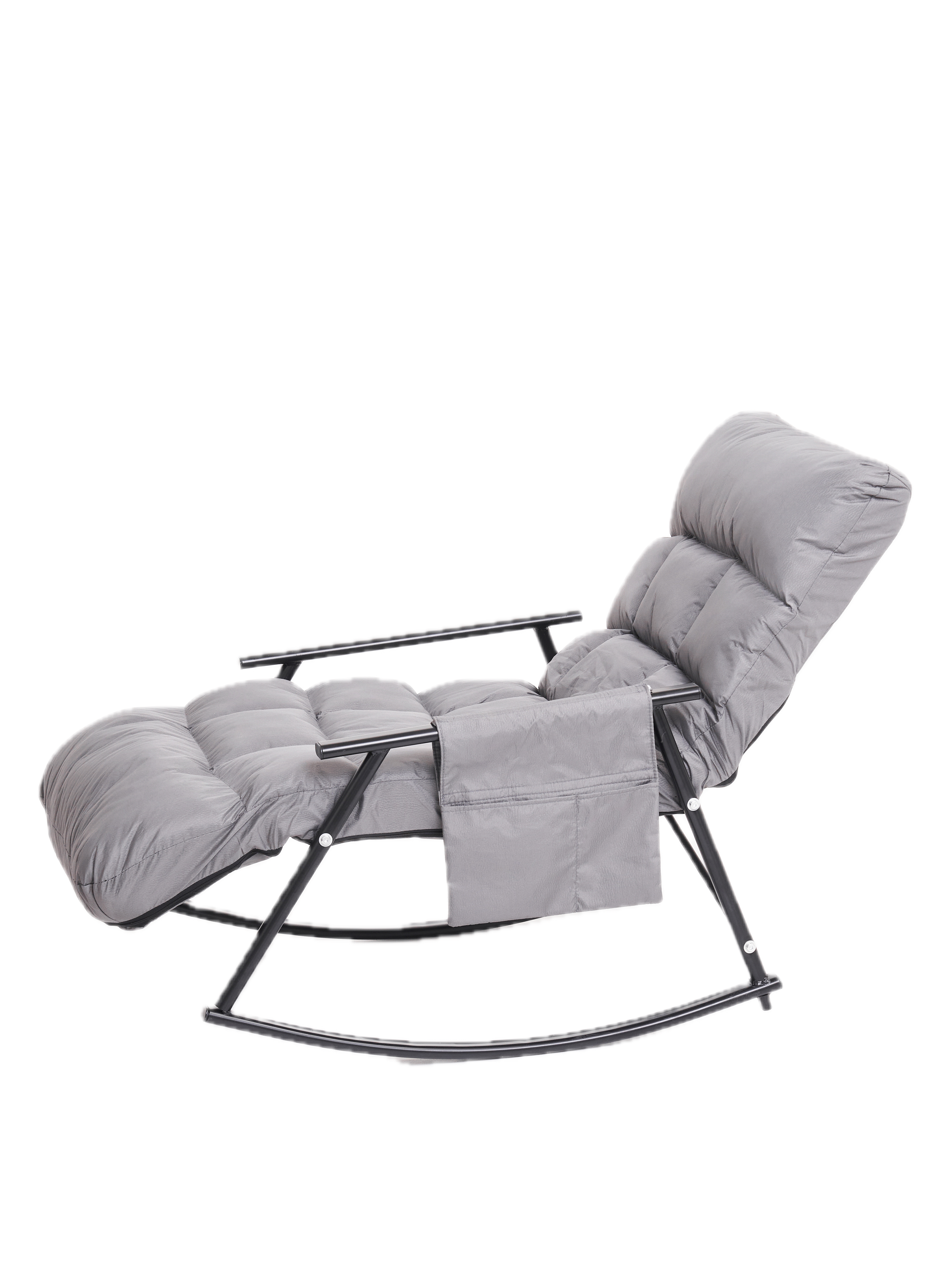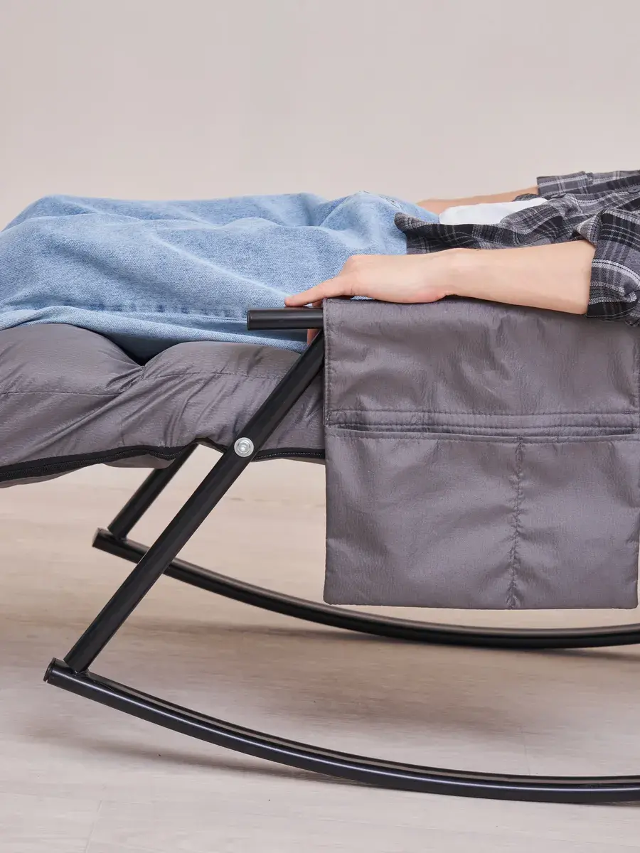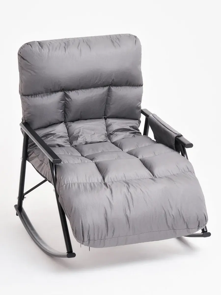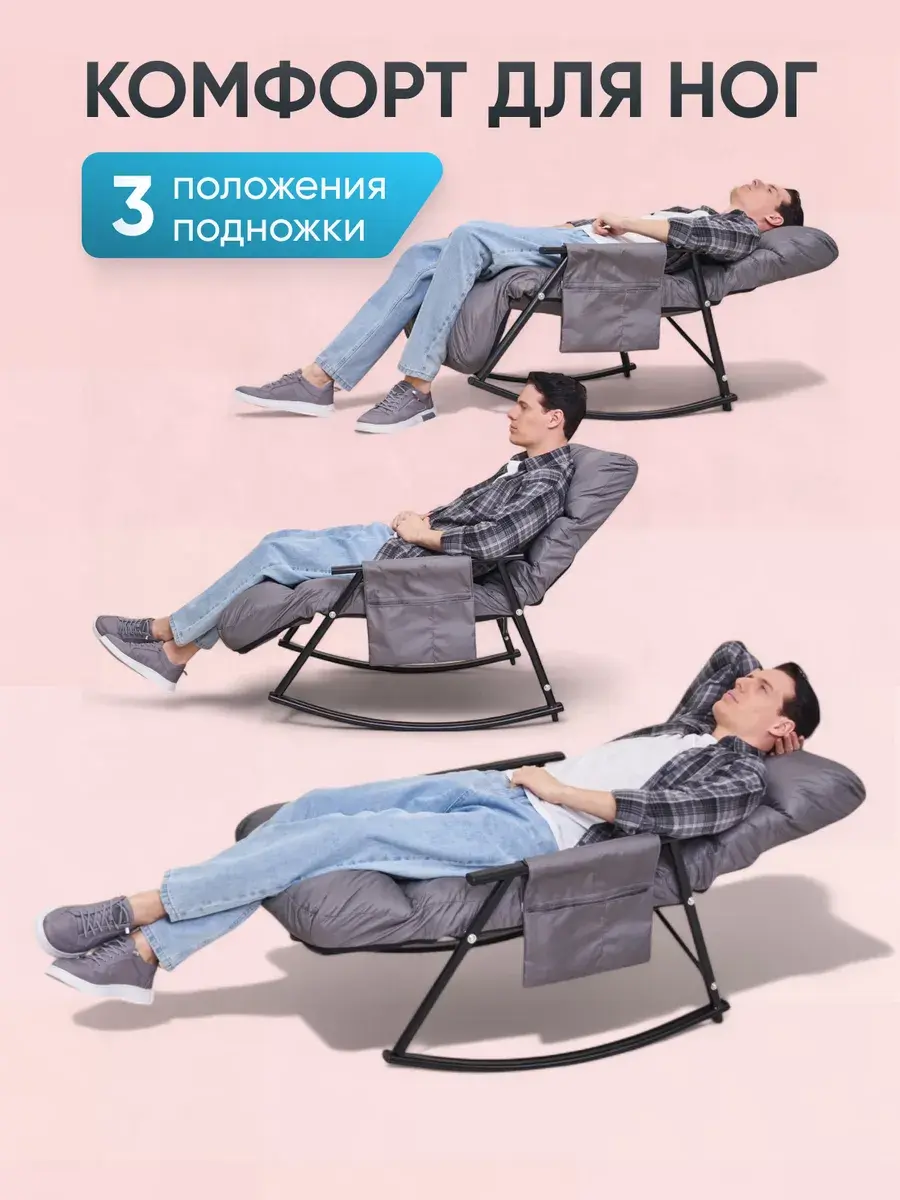 Кресло-качалка для взрослых для дома Sevilgame BigY – это универсальный предмет мебели, который объединяет функции кресла и качалки. Эта стильная мебель выполнена в дизайне современного минимализма, что делает её отличным выбором для интерьеров в скандинавском стиле, лофте или модерне. Практичное решение для отдыха в гостиной, спальне или на балконе. Кресло-качалка раскладывается до 170 градусов, а мягкий механизм качения создаёт комфорт и расслабление. Обивка из серой технологичной ткани и каркас из прочной стали делают эту мебель не только удобной, но и долговечной. Подвесной карман для хранения книг и аксессуаров добавляет практичности. Регулируемая спинка позволяет выбрать идеальный угол для чтения, отдыха или сна.