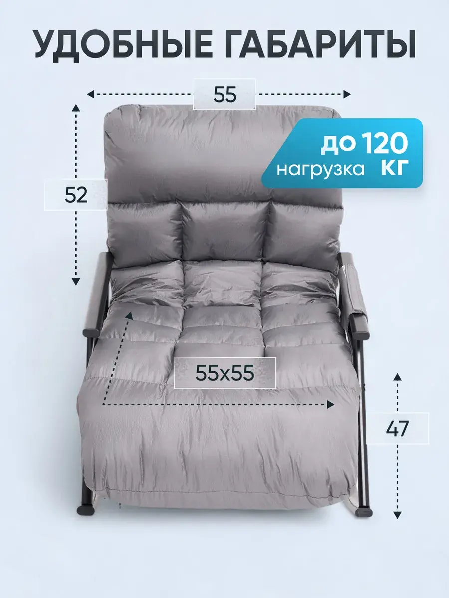 - Габариты: Общие размеры кресла-качалки: 85 см высота, 110 см глубина (при разложенном состоянии), 58 см ширина.