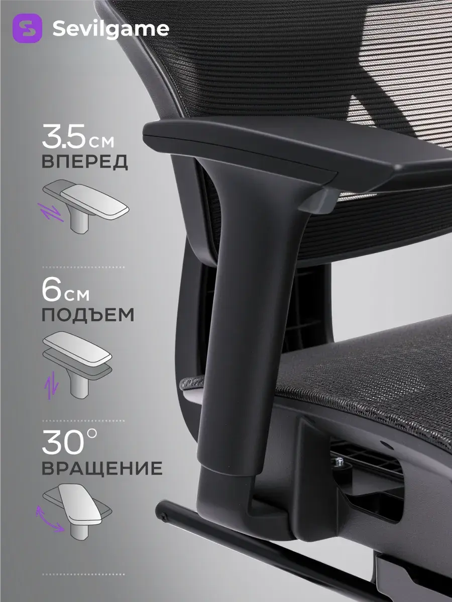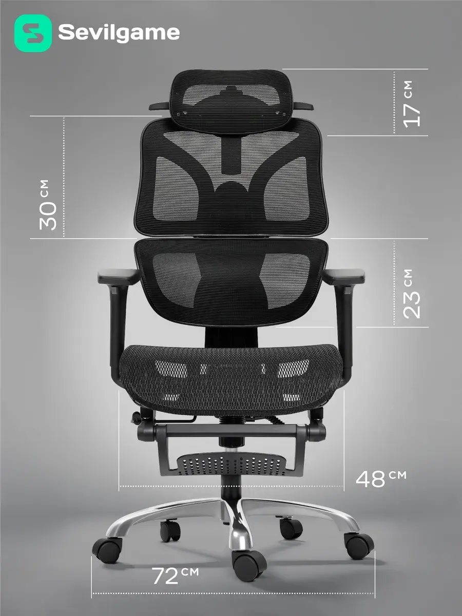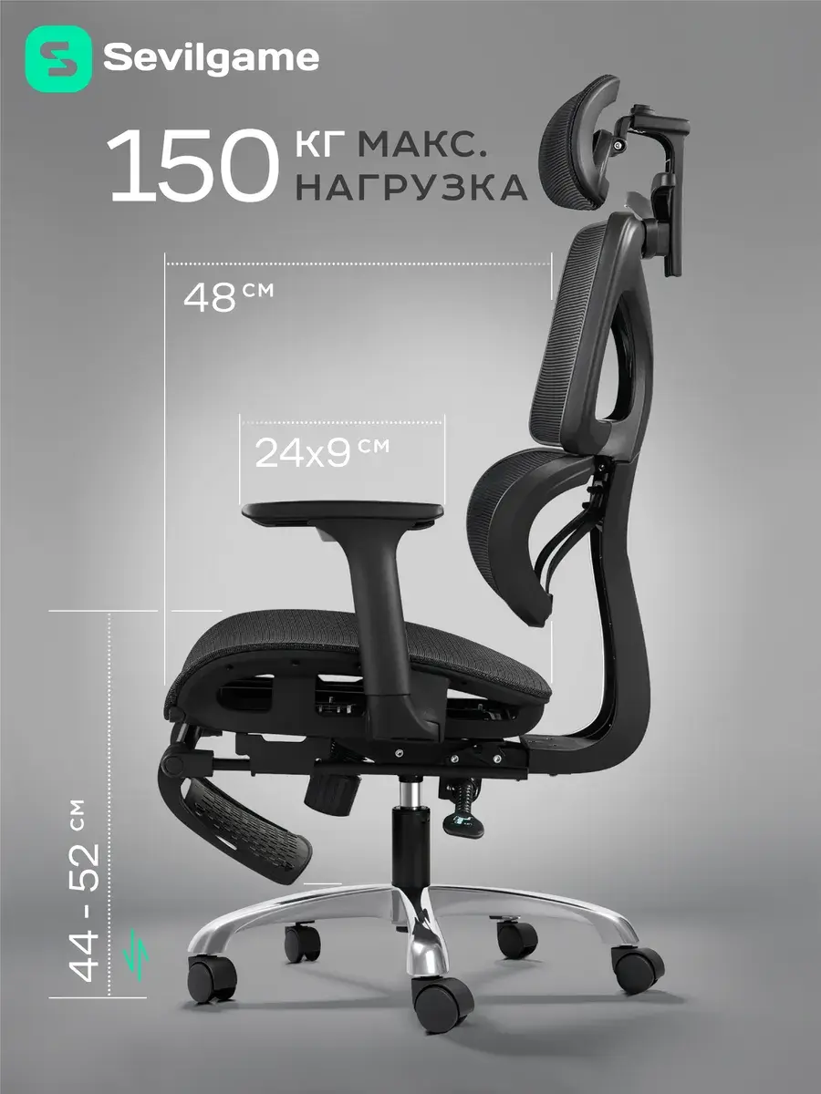 Эргономичный дизайн, разработанный с учетом анатомии человека гарантирует максимальный комфорт и поддержку для спины и шеи. Офисный стул оснащен прочной конструкцией, которая обеспечивает долгий срок службы и надежность в использовании. Износостойкая обивка обеспечит долгосрочную эксплуатацию без потери внешнего вида и функциональности. Регулируемая высота и угол наклона спинки позволяют подстроить кресло под индивидуальные потребности каждого пользователя. Удобные 4D подлокотники способствуют снятию напряжения с рук и плеч. Рабочее кресло легко перемещается по комнате, не оставляя следов на полу. Плавный ход колесиков обеспечивает бесшумное передвижение, что делает его отличным выбором не только для офиса, но и для дома, школьникам, геймерам и всем, кто проводим много времени на компьютером. Минималистичный дизайн вписывается в любой интерьер. Простая сборка займет не более 30 минут. Закажите кресло Sevilgame сейчас и наслаждайтесь комфортом ежедневно!