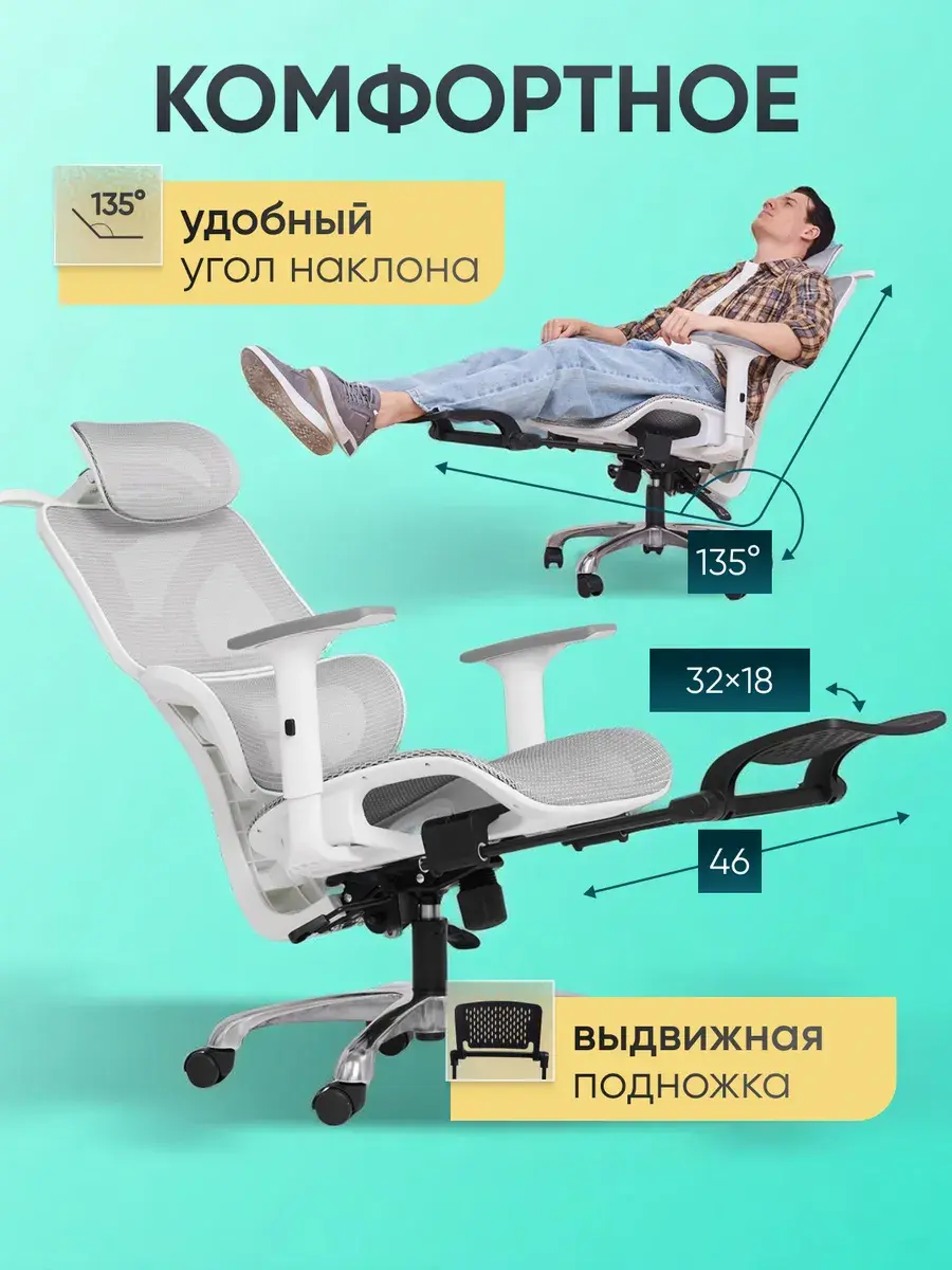 - Эргономичный дизайн, разработанный с учетом анатомии человека гарантирует максимальный комфорт и поддержку для спины и шеи.