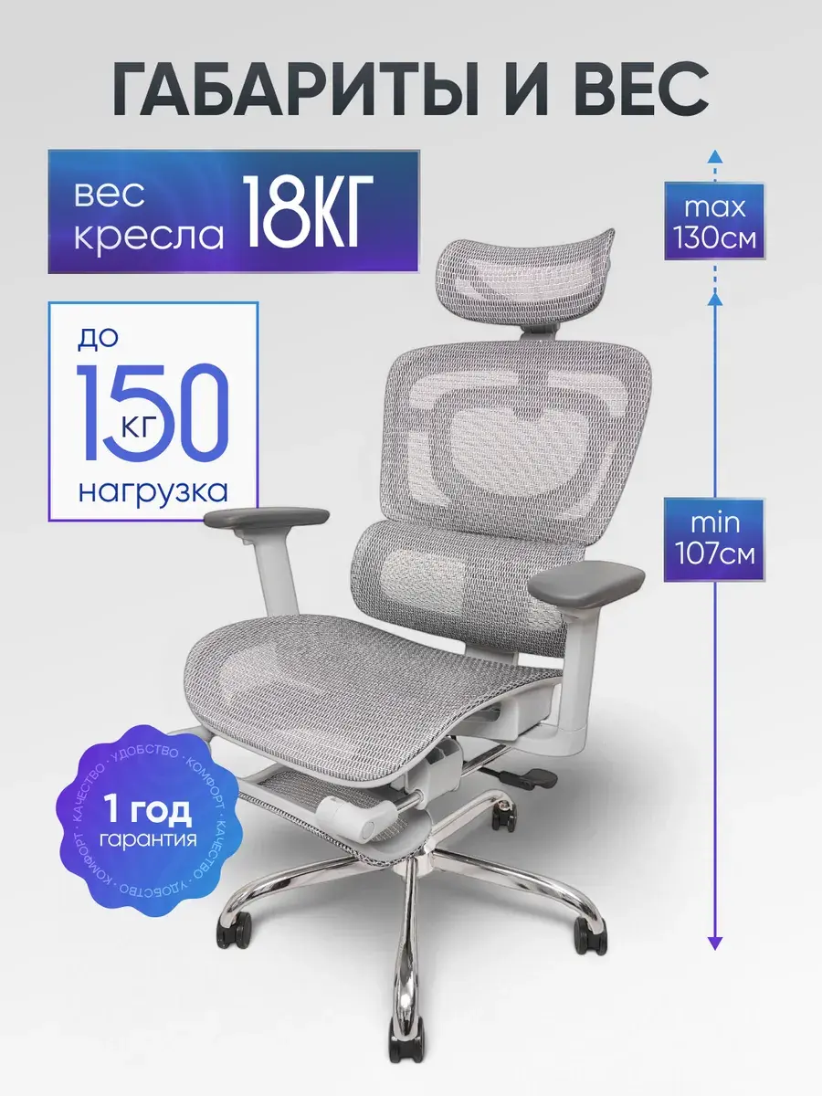 - Максимальная нагрузка: До 150 кг, что делает кресло подходящим для пользователей разной комплекции.