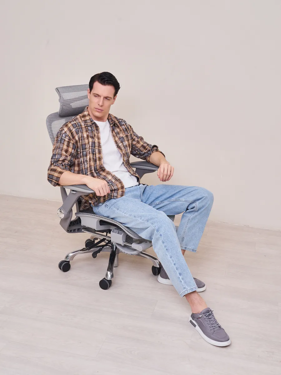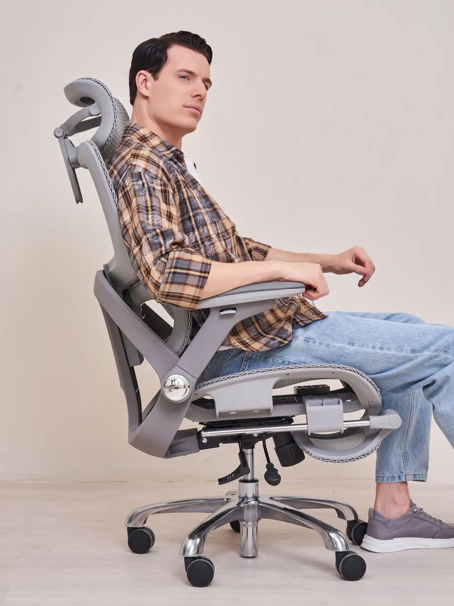 - Ортопедическое кресло с подлокотниками и подножкой — идеально для длительной работы за компьютером или игр.