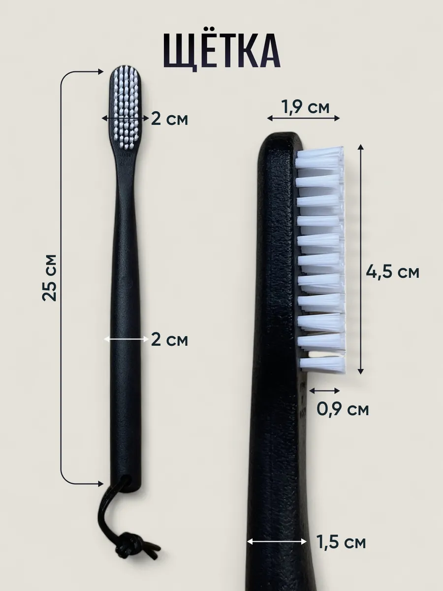 - Щётка: Габариты (Д×Ш×Г): 25 × 2 × 1,5 см