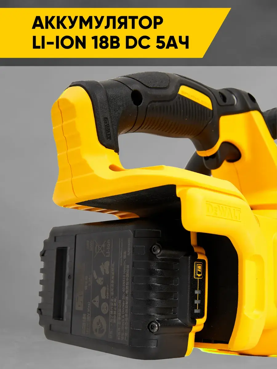 - В комплекте с пилой поставляется аккумулятор 18 В емкостью 5 А·ч и зарядное устройство, что позволяет начать работу сразу после покупки;
