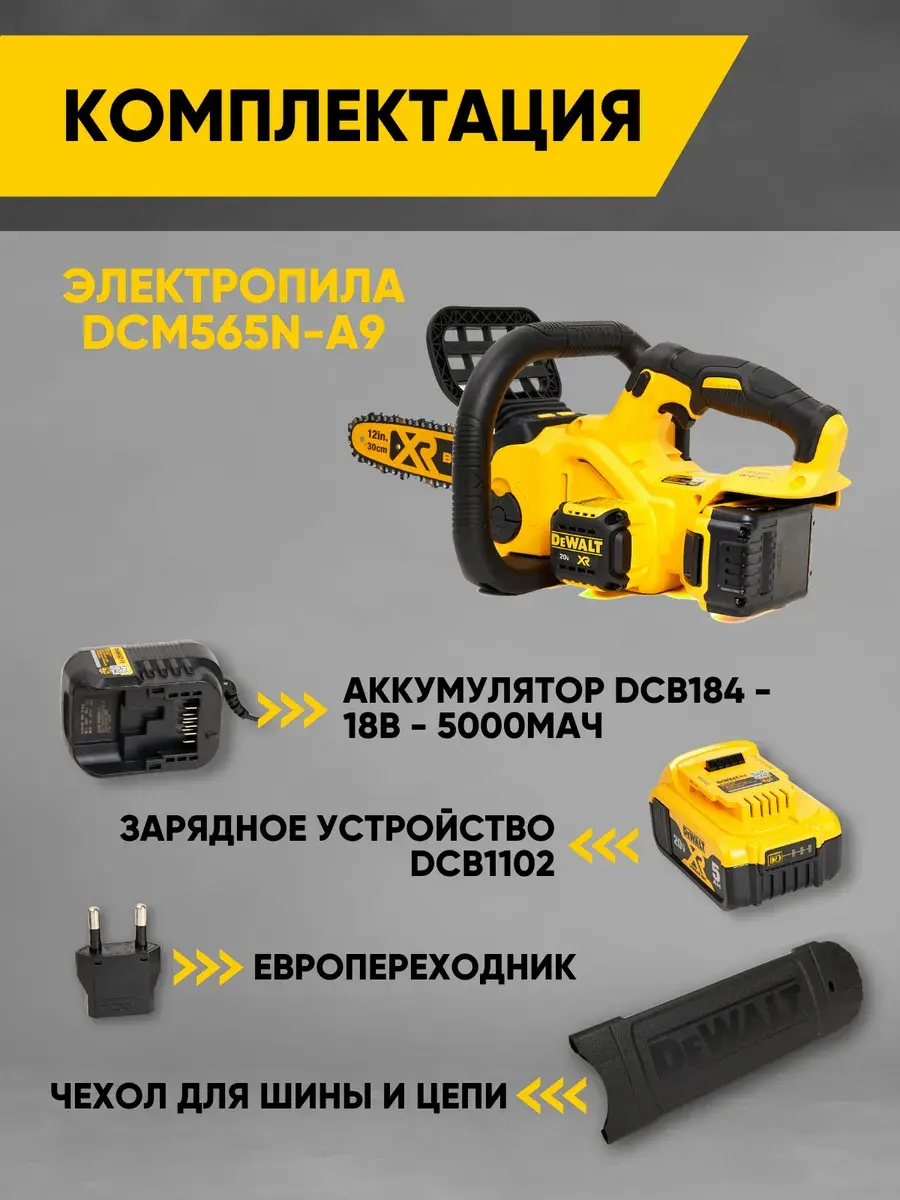 - Пила с аккумулятором и зарядкой DeWalt DCM565N-A9 – это садовый инструмент, который удовлетворит все ваши потребности в эффективной и быстрой резке.
