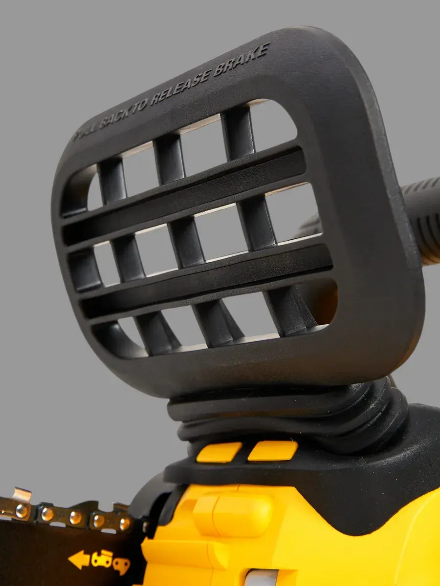 - Удобство в использовании достигается благодаря бесключевой системе натяжения цепи, что упрощает обслуживание инструмента, и эргономичному дизайну, снижающему усталость при длительном использовании;