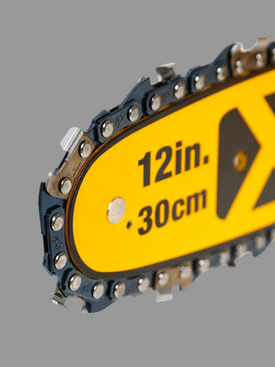 - Длина шины составляет 30 см, скорость цепи достигает 7,68 м/с, что позволяет эффективно выполнять резку различных материалов;