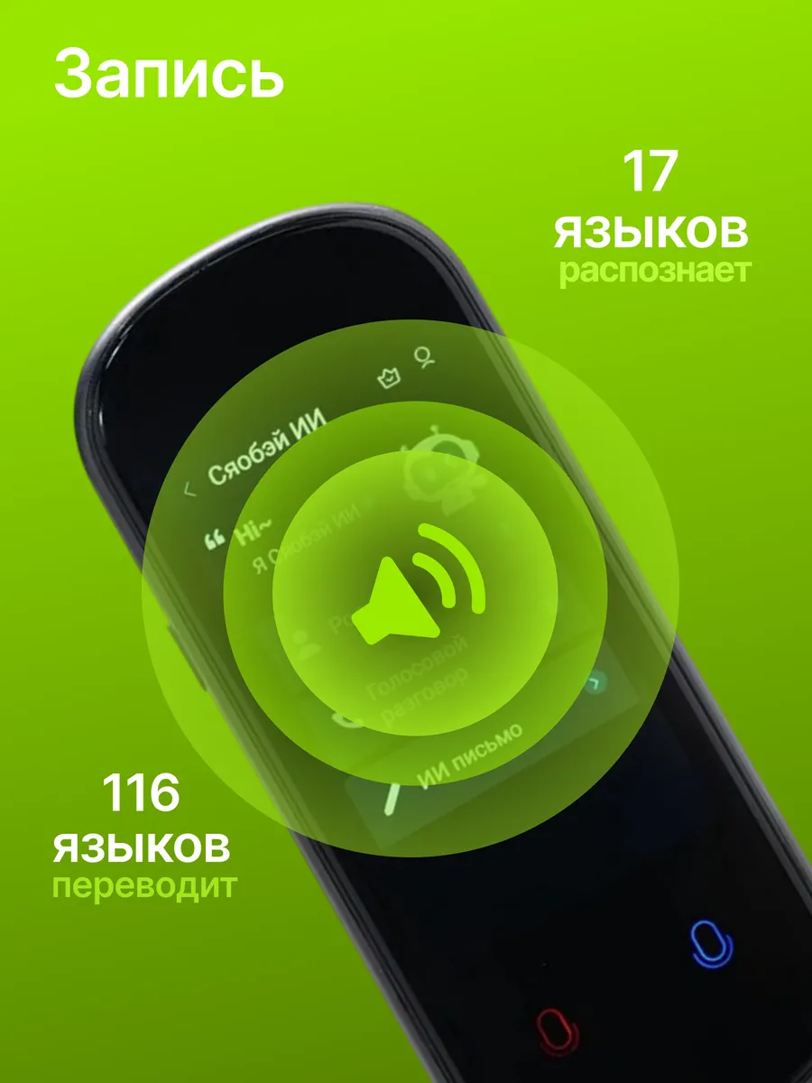AI-ассистент с функцией диктофона: Устройство не только переводит, но и записывает речь, сохраняя параллельно текст перевода — готовый отчёт о встрече или беседе. Незаметный и неутомимый спутник: При весе всего 90 грамм и ультракомпактном корпусе он обеспечивает до 8 часов активной работы и неделю в режиме ожидания.