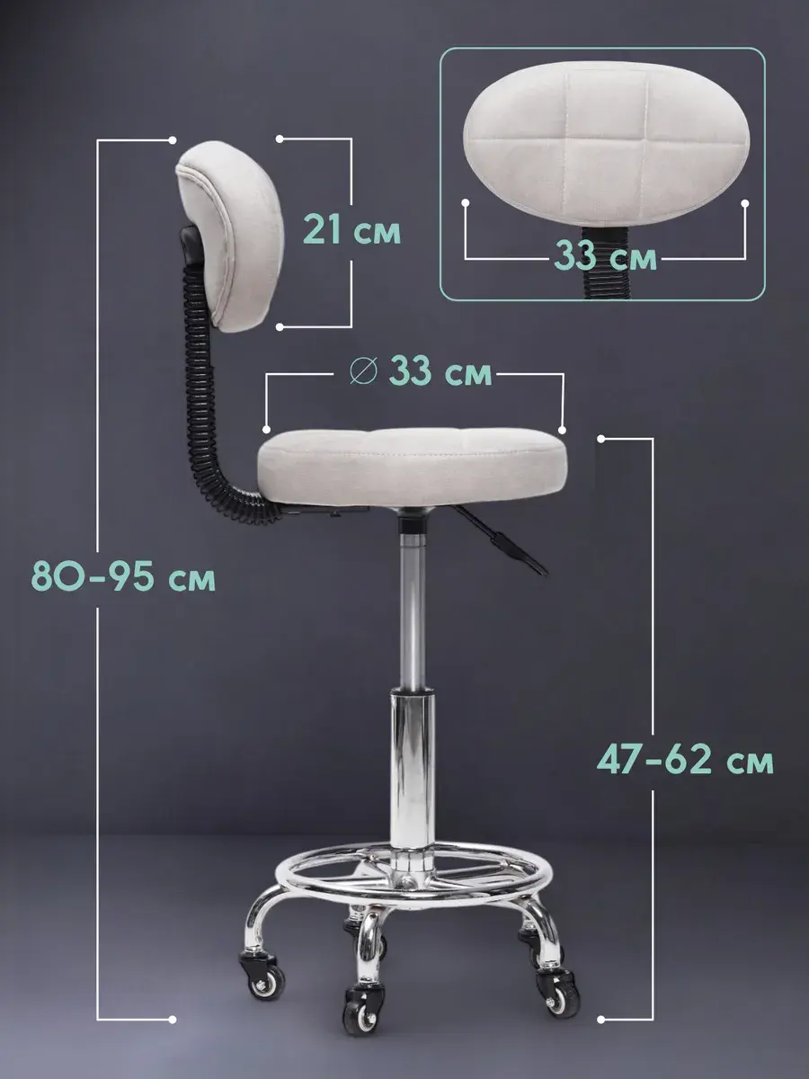 КОМФОРТ И УДОБСТВО Кресло Sevilgame Rym — это стиль и эргономика для дома, офиса, салонов красоты (стул мастера маникюра/макияжного столика) и учебных пространств. Компактный размер позволяет легко задвигать его под стол, экономя место. Гибкая спинка поддерживает поясницу, снижая нагрузку на позвоночник при длительном использовании. К