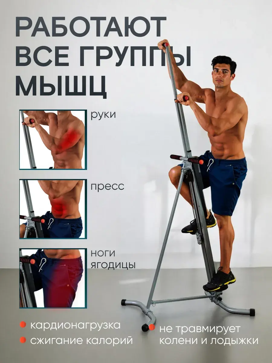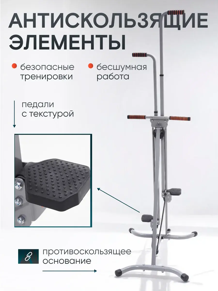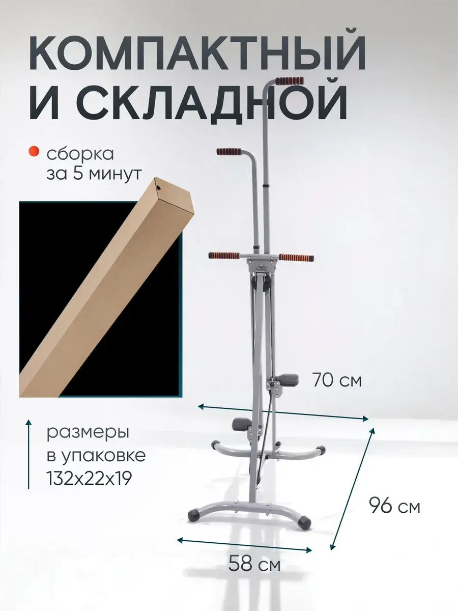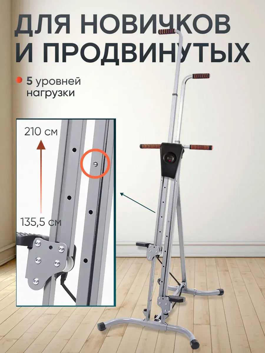 - 5 УРОВНЕЙ НАГРУЗКИ – настройте высоту вертикального альпинистского тренажера под свой рост и уровень подготовки. Чем выше рукоятки, тем выше интенсивность тренировки.
